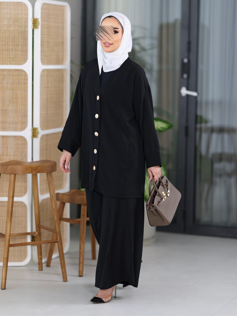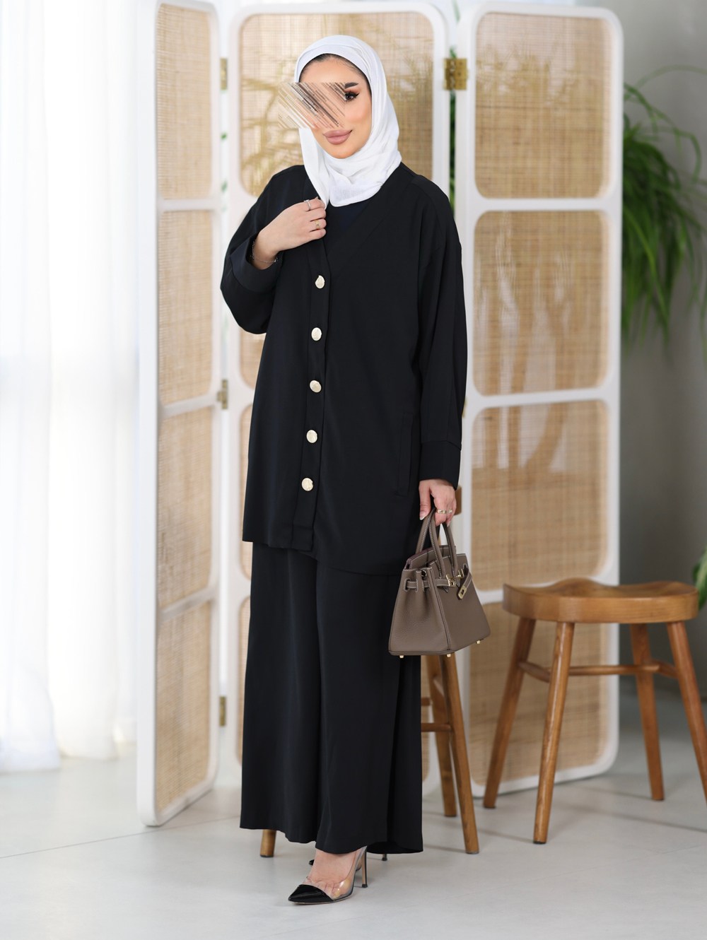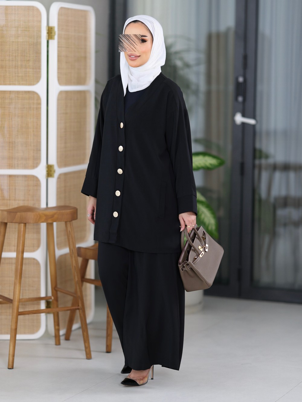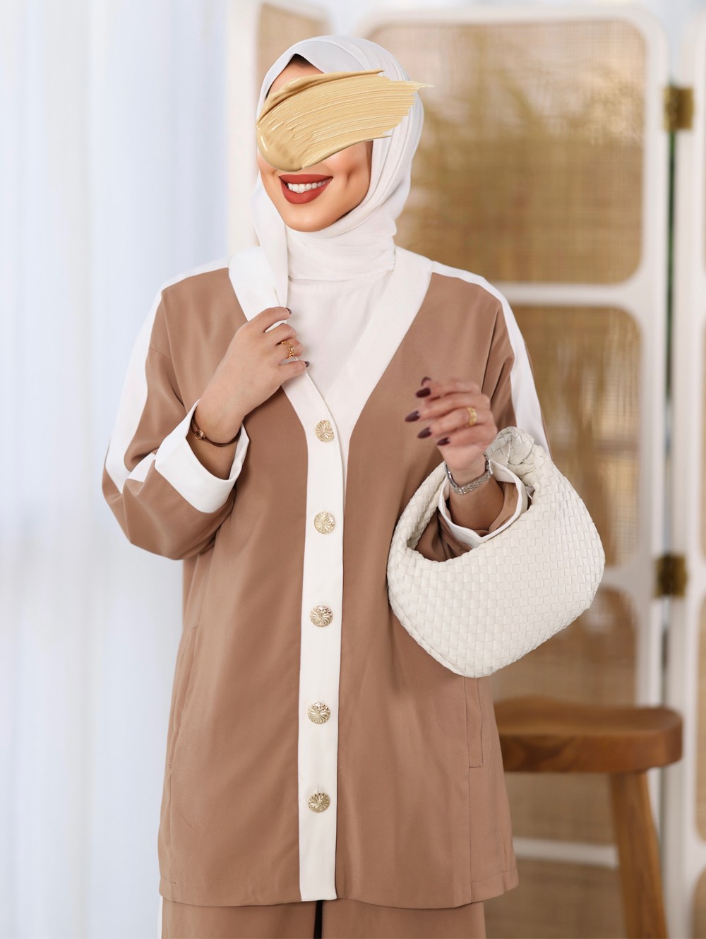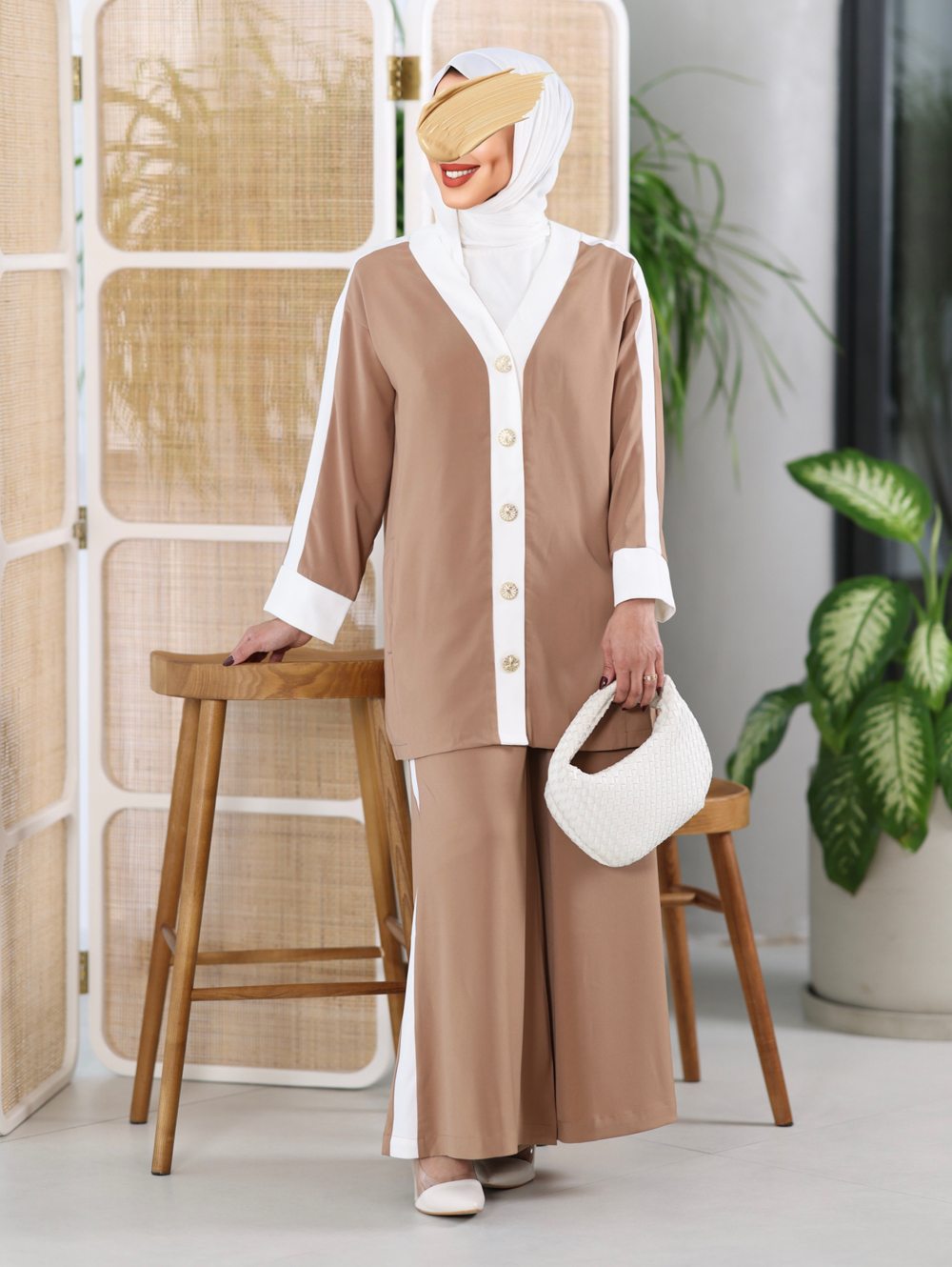 مثالي للاسترخاء في المنزل، أو الذهاب لتناول البرنش، أو ارتداء ملابس أنيقة ليوم غير رسمي في المكتب، هذا الطقم متعدد الاستخدامات بما يكفي لأي مناسبة. لوحة الألوان المحايدة تجعل من السهل المزج مع القطع الأخرى في خزانة ملابسك، بينما يضمن المظهر المريح والأنيق دائما أن تبدين أنيقة بلا جهد.