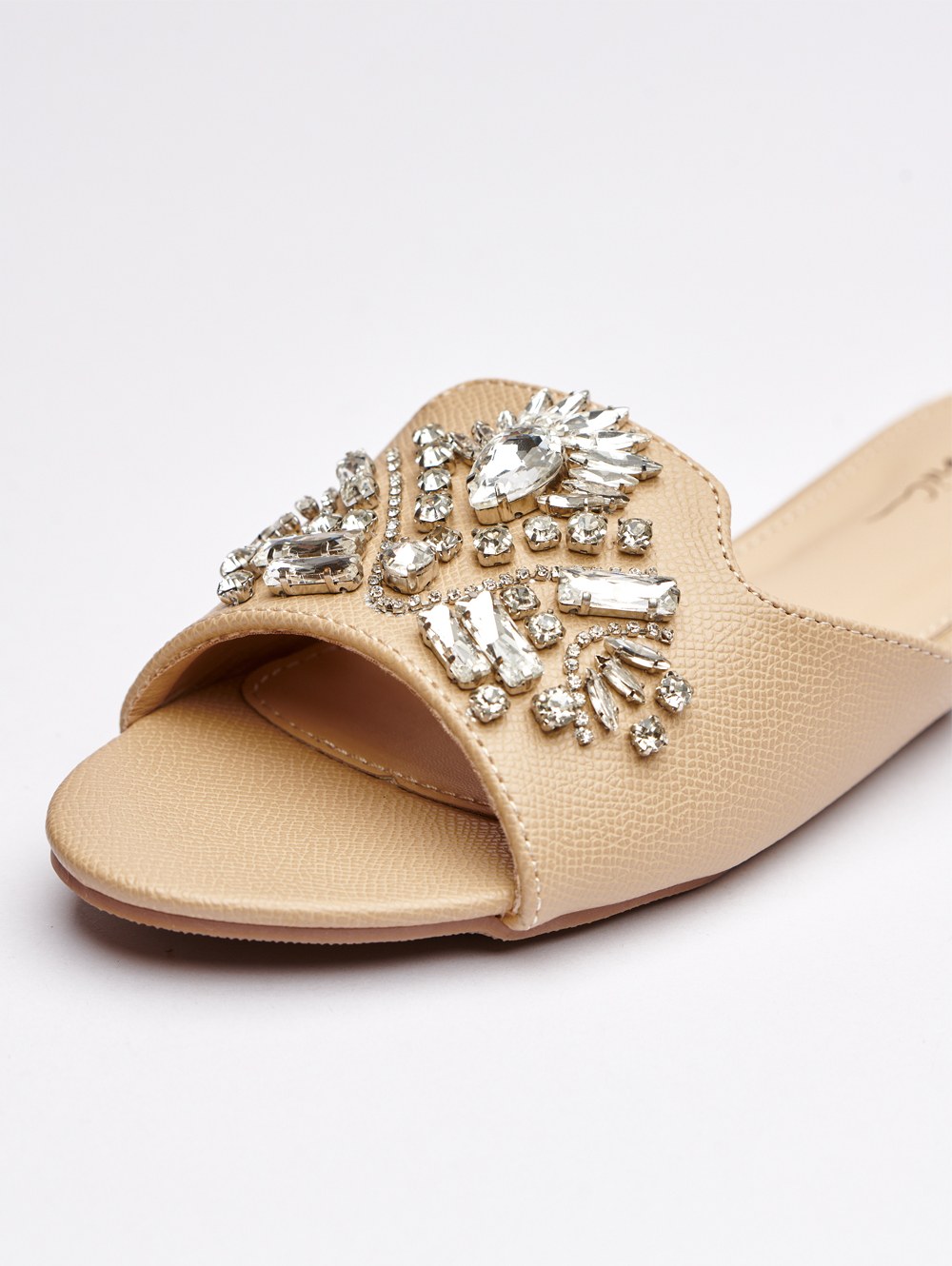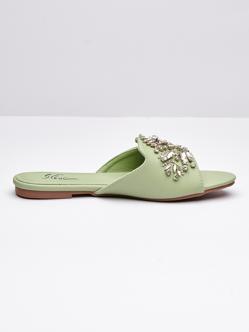 أضف لمسة من البريق إلى مناسبتك الخاصة مع صنادل Diamond Light المزخرفة مع كريستالات يدوية من Simply Chic، حيث يلتقي الفخامة بالراحة.