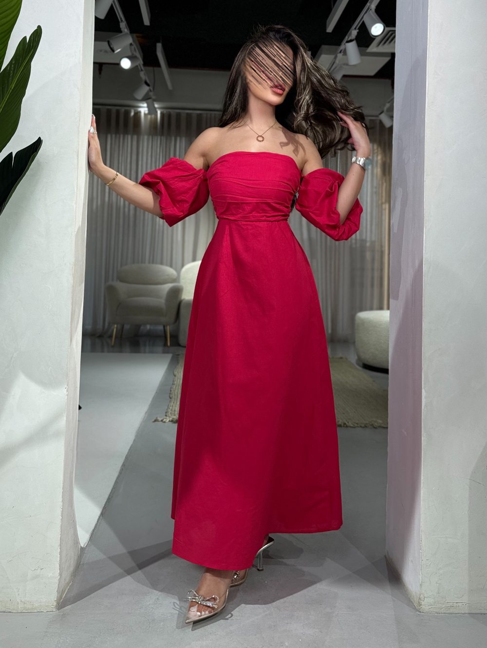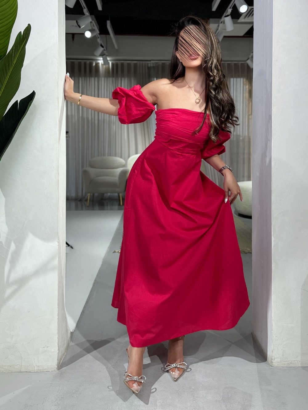 فستان سهرة مكشوف الكتف أنيق