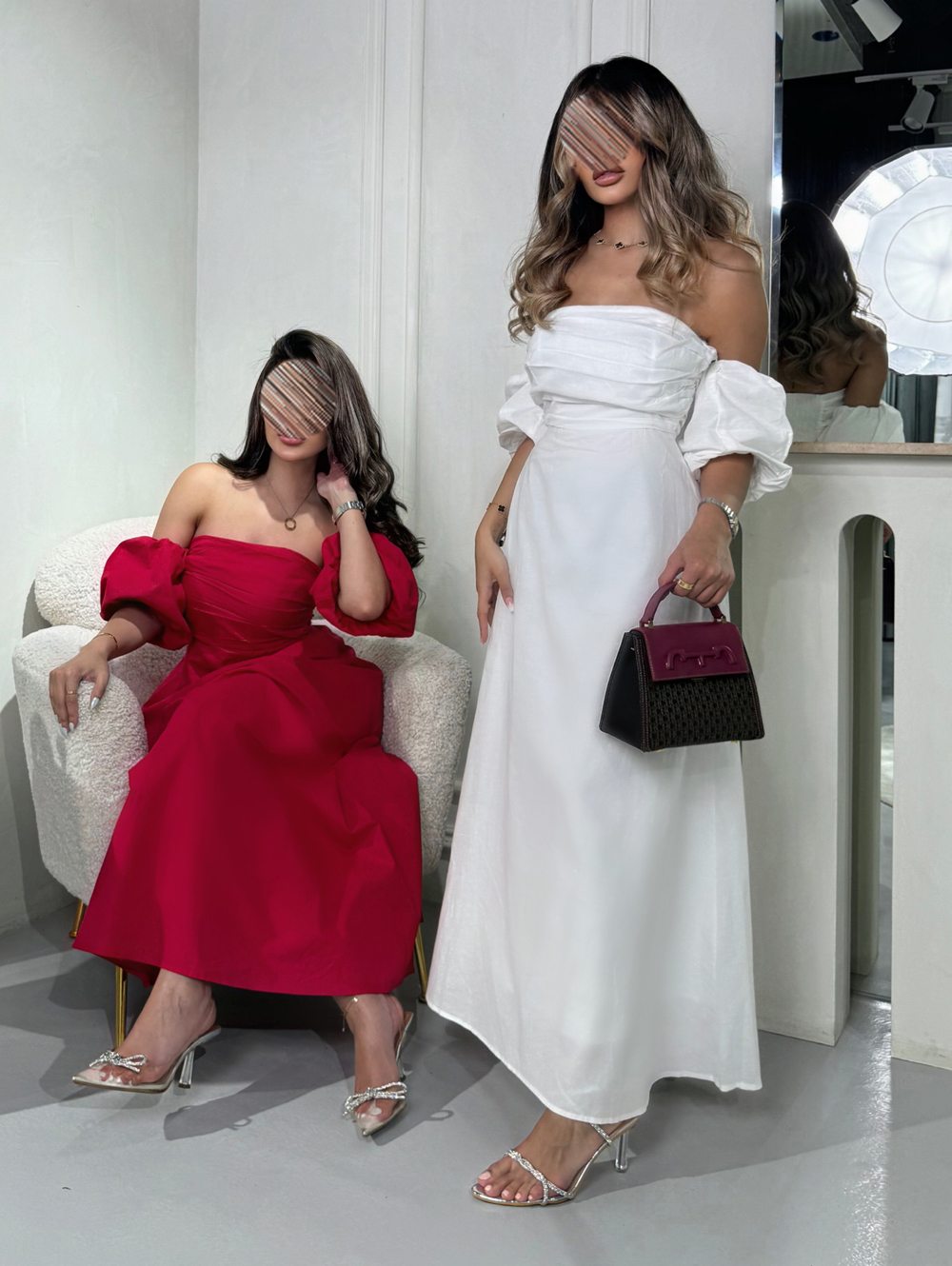 - ياقة مكشوفة على الكتف: تخلق مظهرا أنثويا وأنيقا