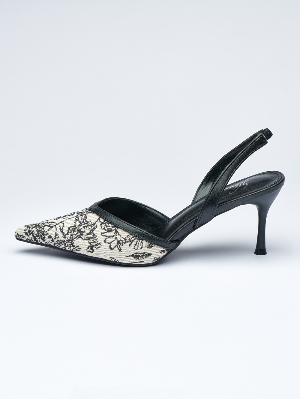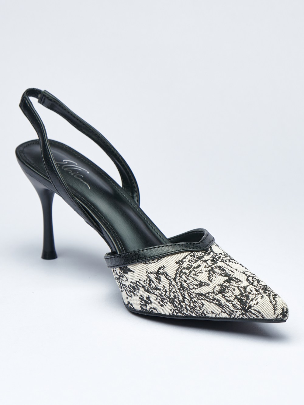 يجمع كعب السلينغباك العالي المطبوع بالأبيض والأسود بين التصميم العصري والجاذبية الخالدة، مما يجعله ضروريا في أي خزانة. نسقيها مع فستان أسود صغير، أو بنطلون مفتص، أو تنانير لتعطي مظهرا أنيقا ومصقولا بلا جهد.