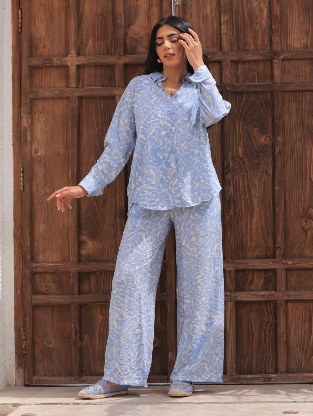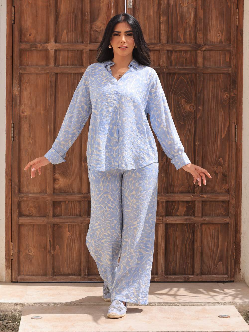 استمتعي بتجربة راحة لا مثيل لها مع طقم القميص والبناطيل العصري. تم تصميمه بعناية ليوفر لك مزيجًا مثاليًا من الراحة والأناقة، مما يجعله الخيار الأمثل للاسترخاء في المنزل أو قضاء يوم مليء بالأنشطة.
