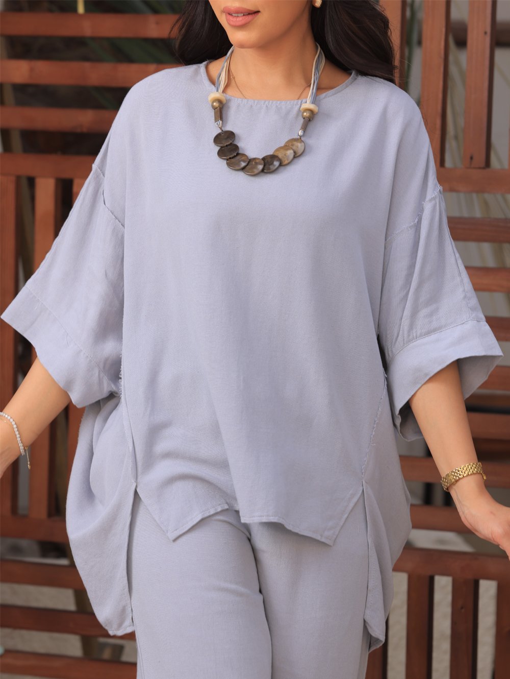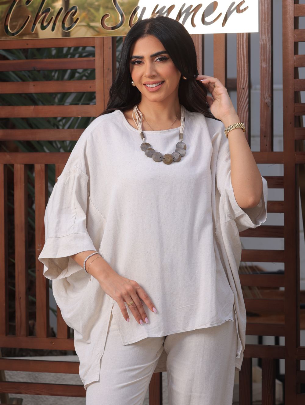 احتضن جوهر هدوء الصيف مع طقم Serene Summer Set، وهو طقم جذاب مصمم لأناقة لا مجهودة وأناقة خالدة. هذه المجموعة الخفيفة الوزن والقابلة للتنفس مصنوعة من أقمشة فاخرة تداعب بشرتك بلطف، مما يضمن راحة طوال اليوم خلال الأيام الدافئة المشمسة.