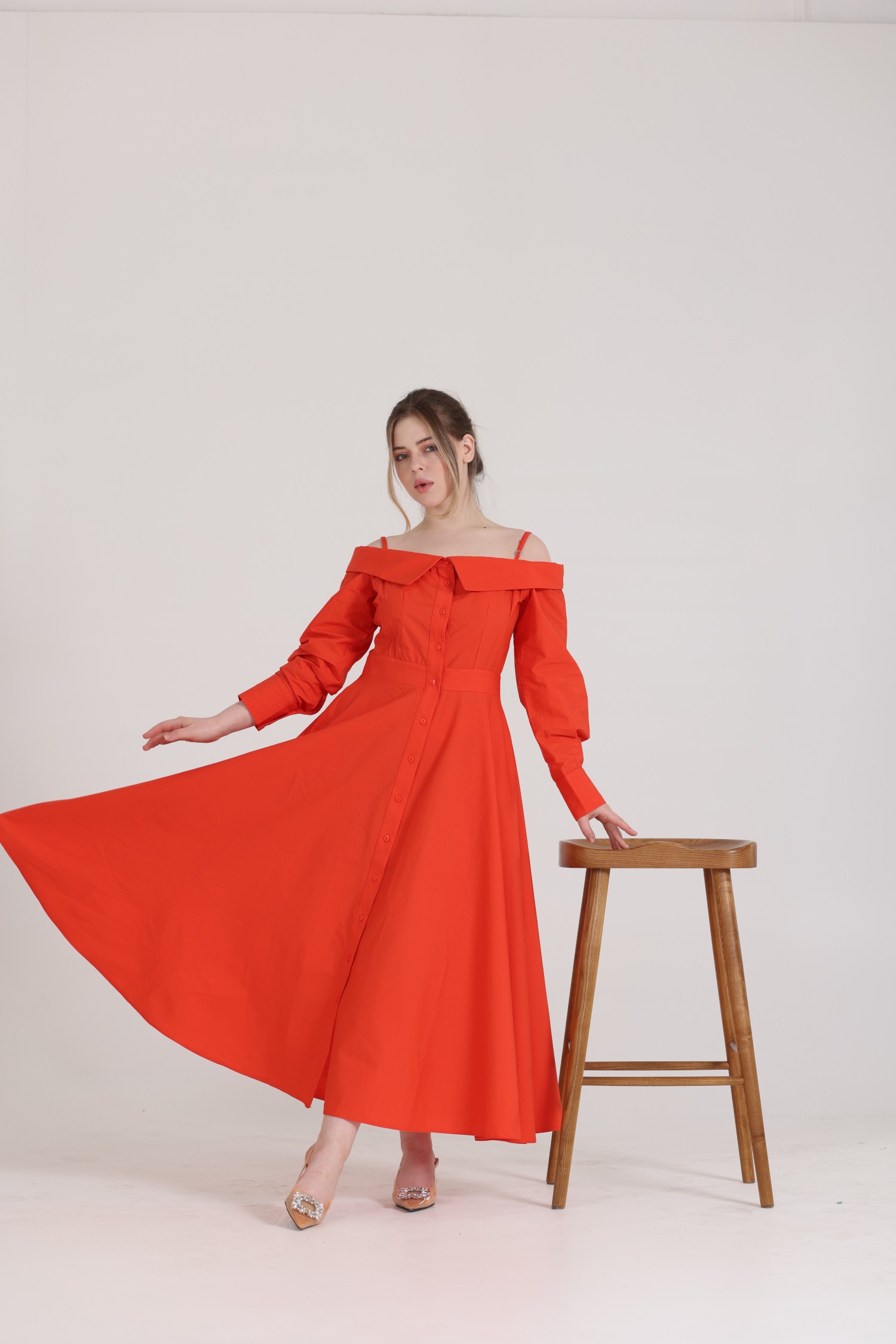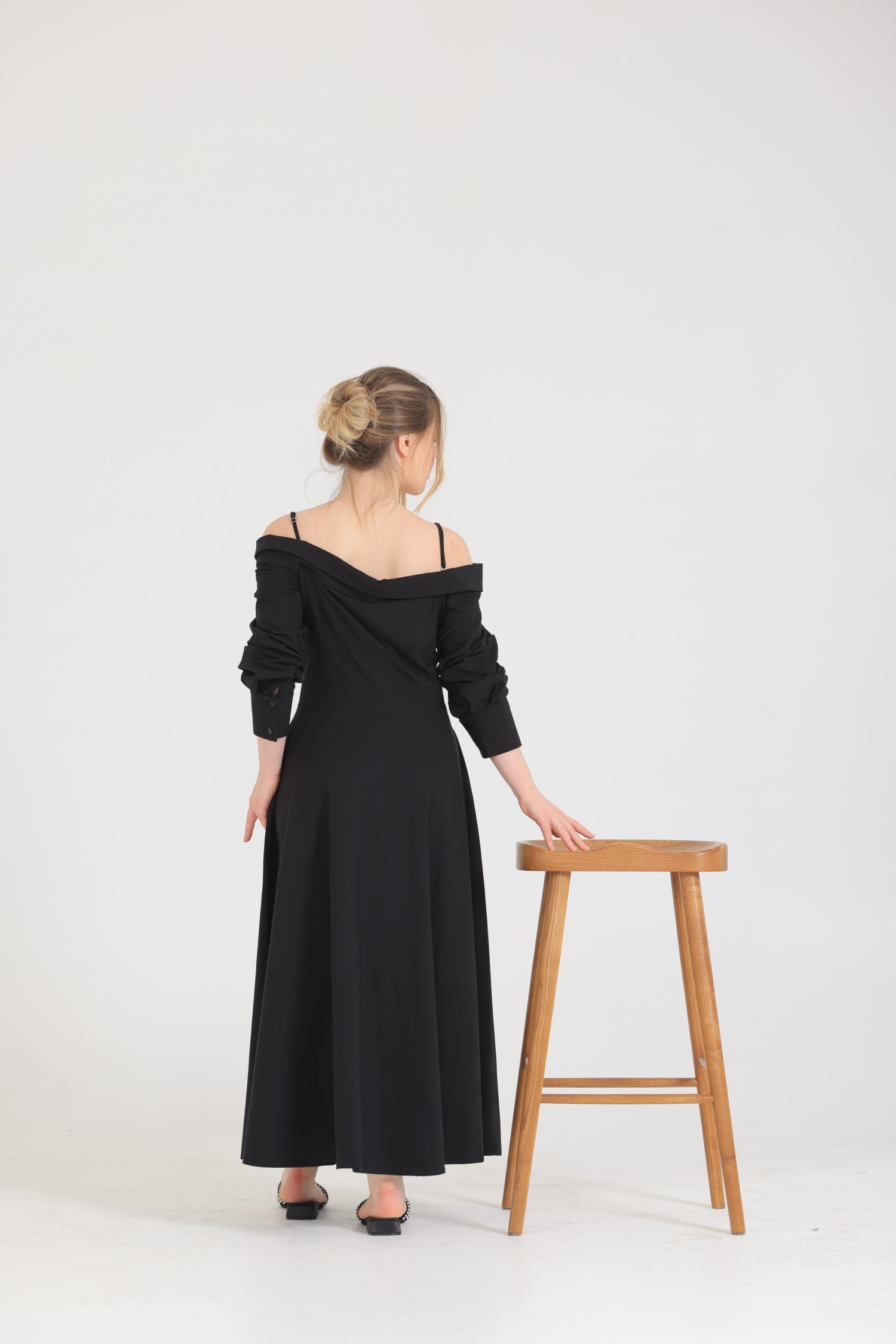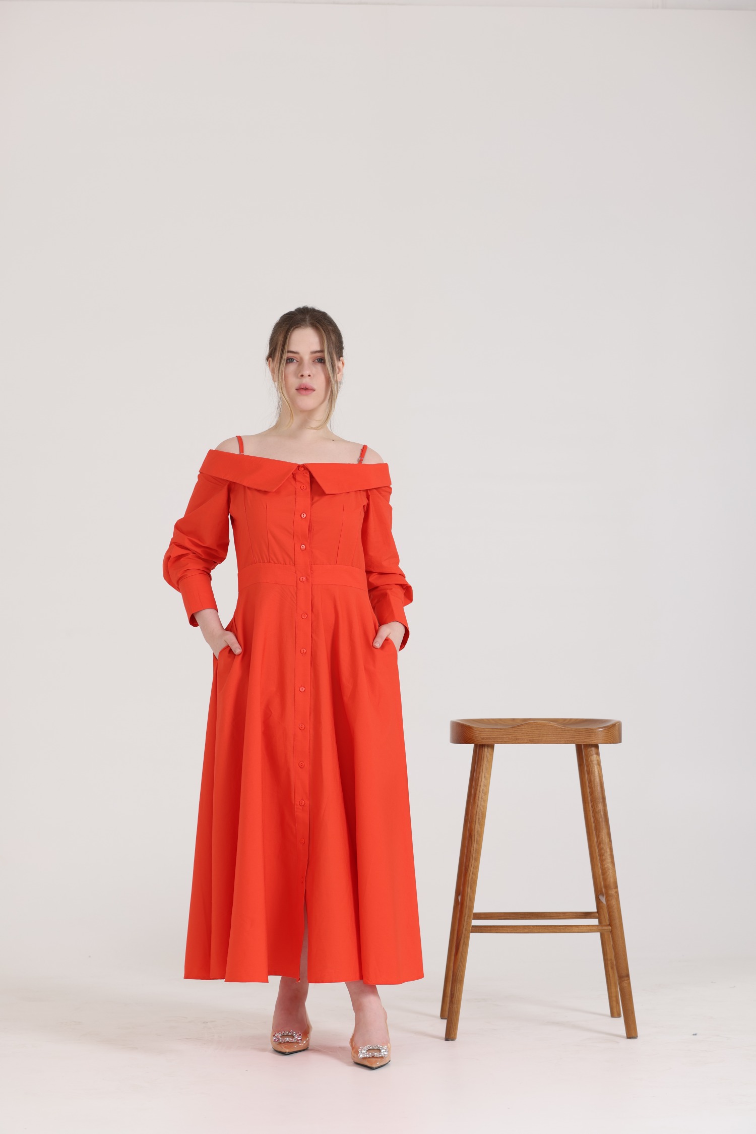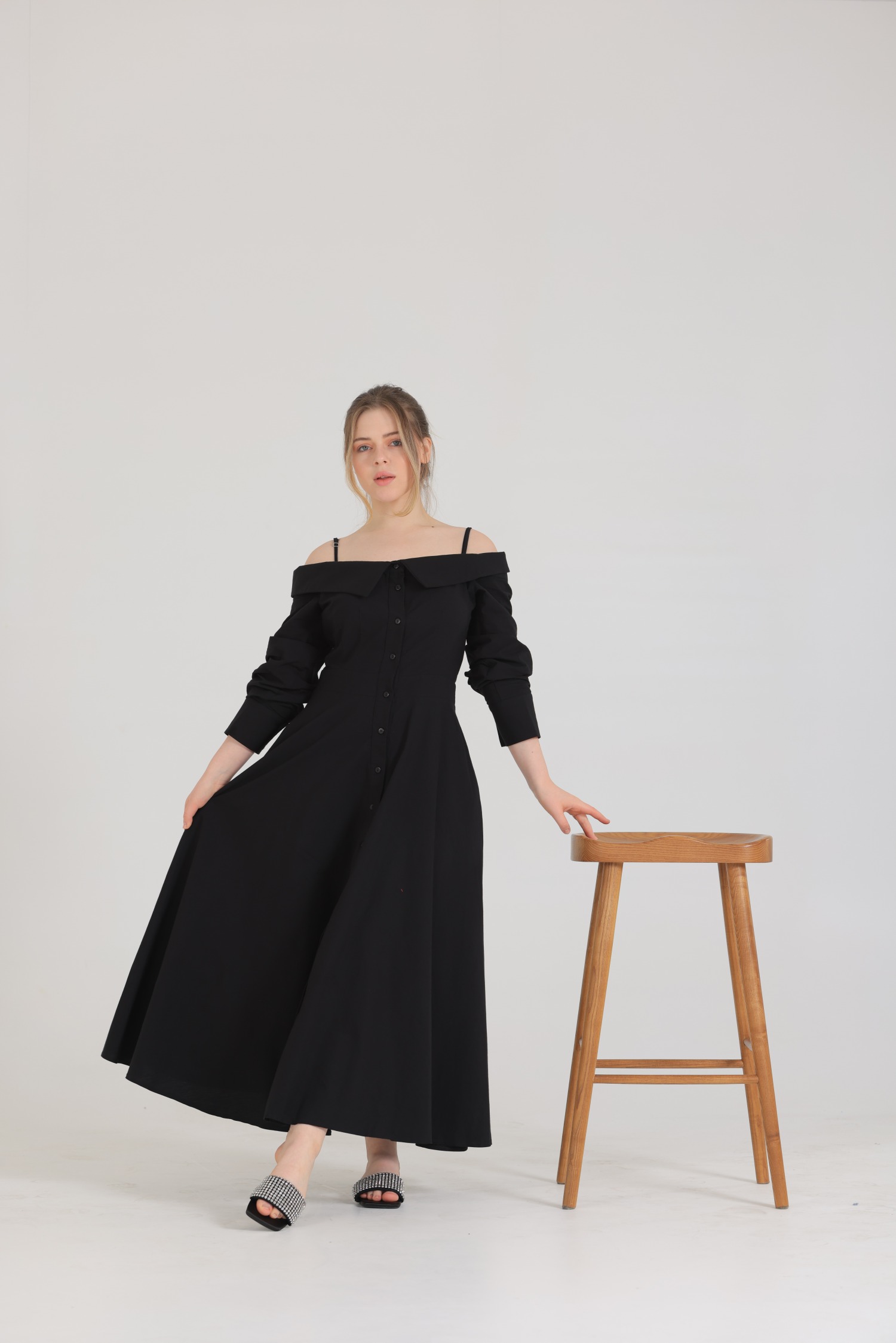 اكتشفي الأناقة الكلاسيكية مع فستاننا القطني الطويل. مصنوع من 100% قطن ناعم، يوفر الفستان راحة فائقة وأسلوبًا أنيقًا. تصميمه الطويل والأكمام الكاملة تجعله مثاليًا للمناسبات الرسمية وغير الرسمية.
