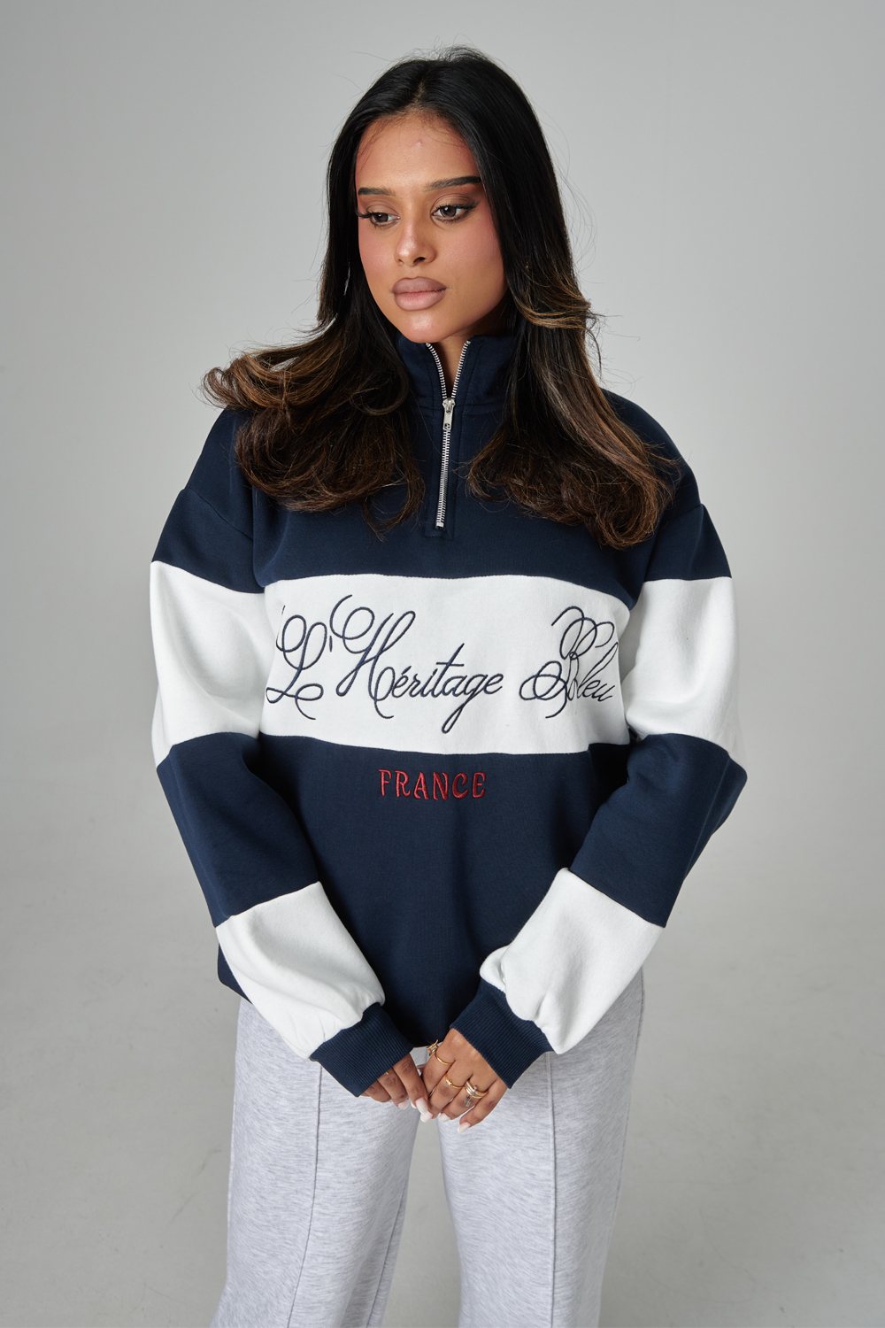 Featuring an elegant “Le Héritage Bleu – France” script print, it delivers a sophisticated yet relaxed look. Crafted from soft, structured fabric, this sweatshirt offers warmth, comfort, and durability—perfect for casual days, travel, or elevated off-duty styling.
